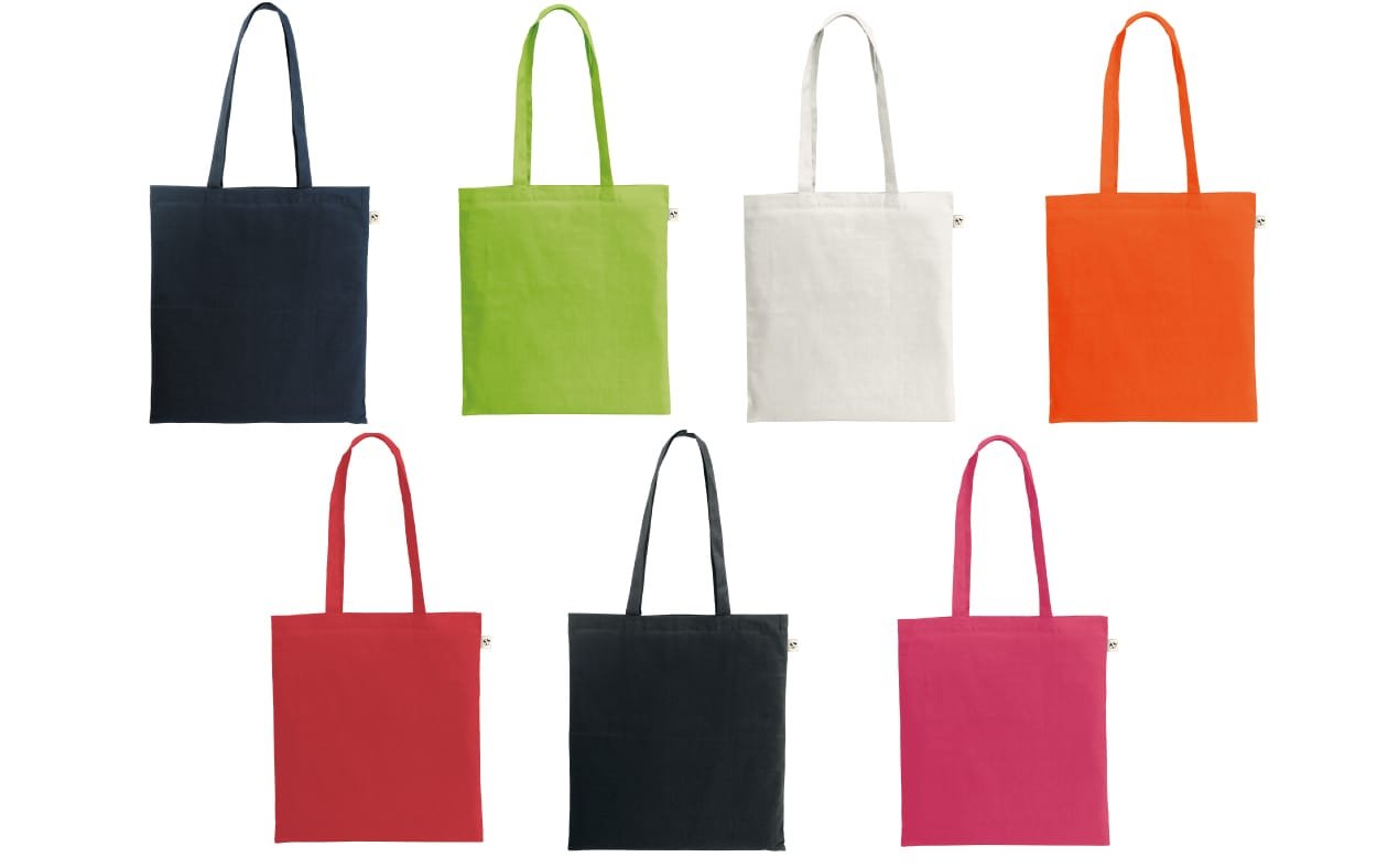 Bolsa confeccionada en algodón reciclado (70%) y poliéster reciclado rPET (30%), con un gramaje de 150 g/m². Incorpora asas largas de 65 cm que facilitan su uso cómodo en el día a día. El algodón reciclado utilizado conserva su color sólido natural, sin procesos de teñido ni blanqueo, lo que contribuye a un menor impacto ambiental. Para obtener el color uniforme se selecciona hilo reciclado del mismo tono, pudiendo presentar pequeñas variaciones e impurezas propias del material, lo que convierte a cada bolsa en un producto único. Gramaje: 150 g/m²