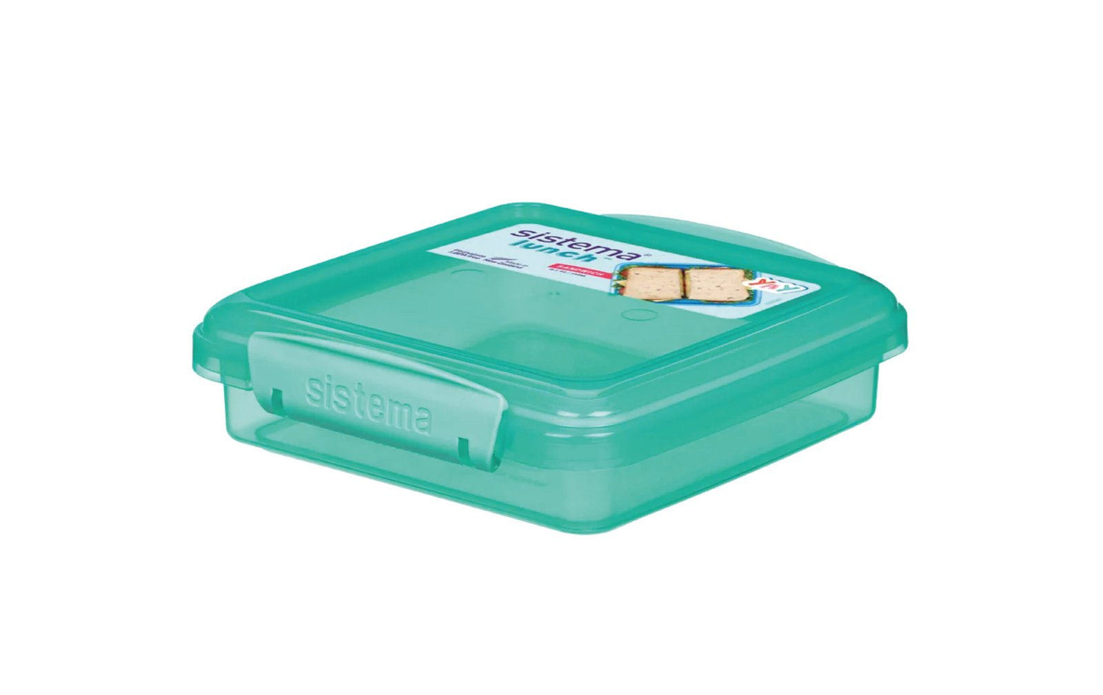 Contenedor Sistema Lunch Sandwich color Celeste de 450ml, su tamaño rectangular es ideal para llevar de almuerzo sandwichs - Contenedor desarrollado especialmente por Sistema - Sistema Klip It, dos clips en los laterales hacen que el bloqueo sea fácil y seguro - El sello interno flexible y los clips de bloqueo hacen que los alimentos permanezcan frescos por más tiempo - Sistema compacto de almacenamiento apilable ahorran espacio de almacenamiento - Apto para freezer, lavavajillas (estante superior) y microondas (sin tapa) - Capacidad 450ml - BPA y Ftalato free - Hecho en Nueva Zelanda 2108837